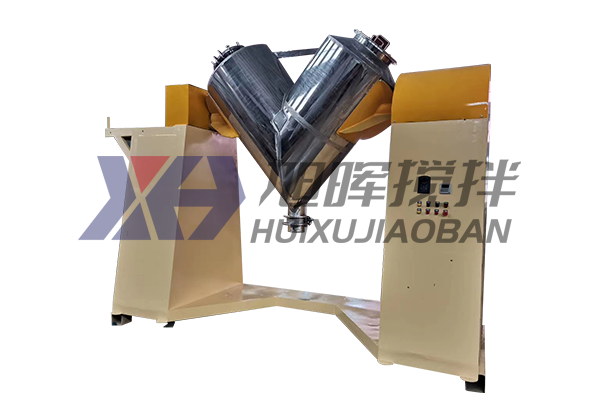 V型混合機由二個不對稱筒體組成,物料可作縱橫方向流動,混合均勻度可達99%以上。